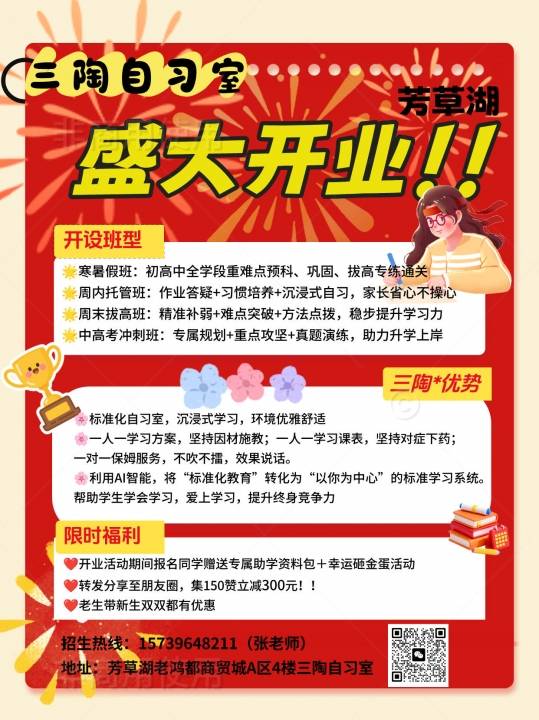 芳草湖三陶AI智习室盛大开业!常年招生:初中、高中1️⃣开设班型寒暑假班...